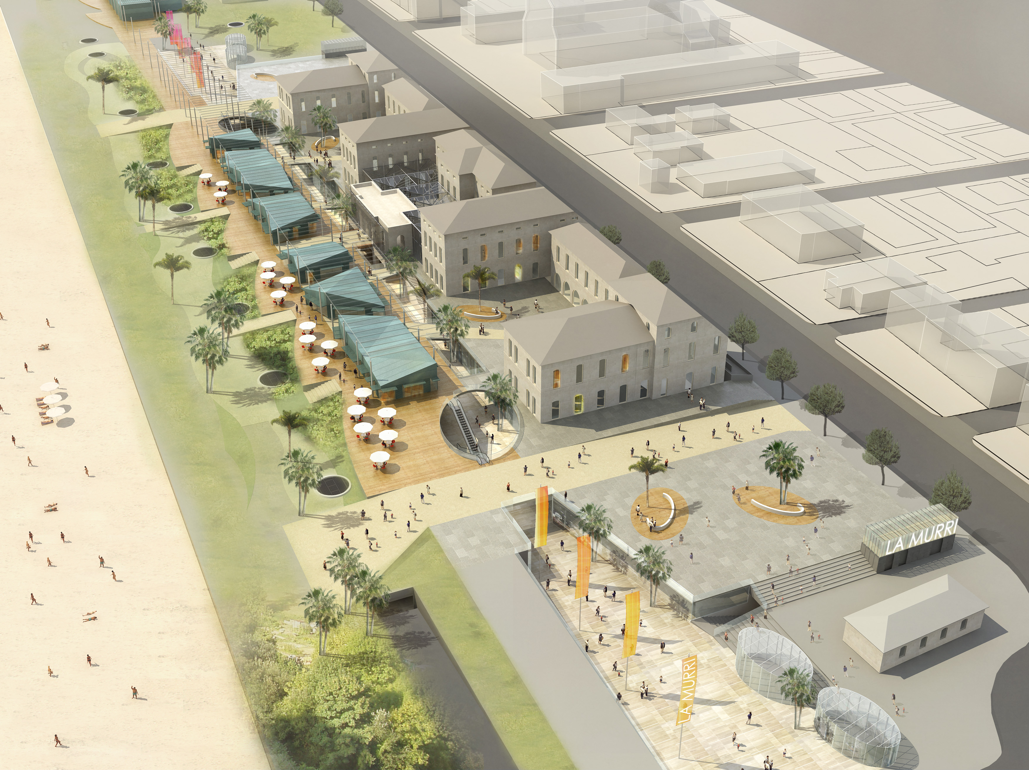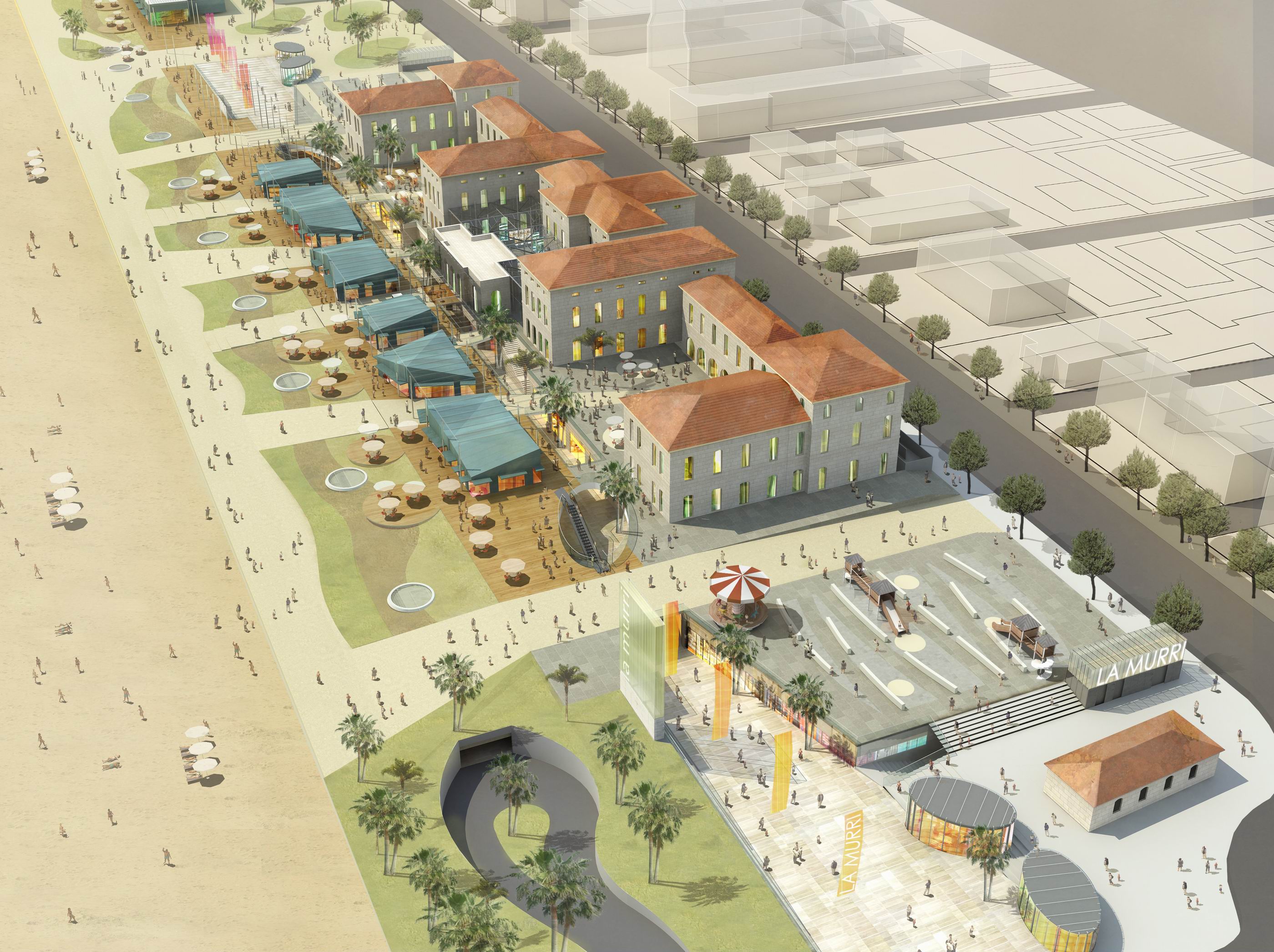 L'intervento consiste nella realizzazione di opere di urbanizzazione primaria e secondaria, nell’ambito del Piano Particolareggiato “ex Colonia Murri”, a Bellariva di Rimini, sul lungomare Tintori, nella zona compresa tra l’arenile via Regina Margherita. Il progetto di opere di urbanizzazione è propedeutico alla realizzazione di un Centro Turistico Commerciale che fa capo all’edificio storico dell’ex-Colonia Augusto Murri,, di una nuova galleria commerciale aperta al piano sottostrada sull’attuale sedime del lungomare. Le opere terminano con la sistemazione esterna delle aree a parco a verde, fino a giungere all’arenile, con zone attrezzate a servizi pubblici, percorsi pedonali, aree di sosta e quant’altro per realizzare un lungomare fruibile pedonalmente e attrattivo. Le opere di urbanizzazione comprendono anche la progettazione della viabilità sia su viale Regina Margherita che lungo via Portofino, fino a giungere all’area denominata ex-Ceschina. A fianco all’edificio della ex-colonia Murri vi sono gli edifici appartenenti all’area Mediterranea, adibita ad ospitare pubblici esercizi, sia con sede negli edifici esistenti che in nuovi da edificare.