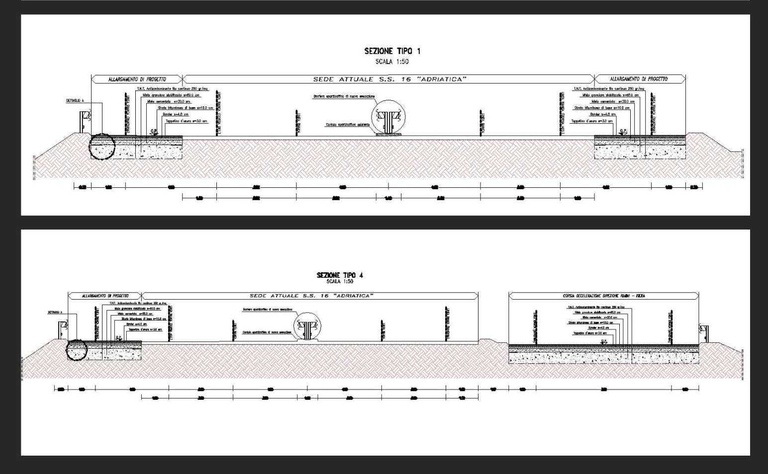 • corsie di accelerazione e decelerazione al fine di risolvere in sicurezza gli ingressi e le uscite dalla S.S.16e via Popilia;
